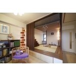 築10年のマンションを購入され、和モダンな雰囲気のおしゃれな和室にしたいと考えられてご来店されました。弊社ショールームの和室の空間展示に一目惚れしていただき、和室造作のご依頼をいただきました。 和室を小上がりにして、畳の下にも収納ができるスペースをご提案させていただきました。 また、LDKの吹き抜けのアクセントになるように、化粧梁を施工させていただきました。 お客様がお持ちの家具と色合いを統一することで、上品で落ち着きのある空間になりました。