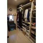 以前は浴室と洗面室のあった場所をウォークインクローゼットにしました。5年前に取り付けたIKEAの大型収納の扉を撤去し、フレームはそのまま再利用しました。以前は寝室の中にあった収納ですが、ウォークインにしてオープンになり、片付けがぐっと楽になったそうです。