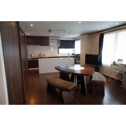 キッチンを新調し、作業や収納に便利なワーキングカウンターを設置しました。 キッチンが広々と使え、効率よくお料理ができるキッチンになりました。 ダークブラウンのキッチンと、ホワイトのワーキングカウンターの組み合わせが、シックなお部屋の雰囲気とマッチしています。