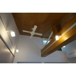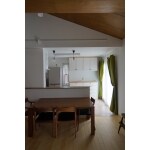 子供部屋は扉をなくし、ロフトからはいつでもリビングをのぞく事ができますので、お子様たちの遊び声が常にキッチンに立つお母さんおBGMになる事間違いなしだと思います。床は無垢床を採用しておりますが、コストダウンを図るために梁材や天井材にはラワンベニヤを利用しています。狭くても吹き抜け効果で広々と感じるリビングになりました。