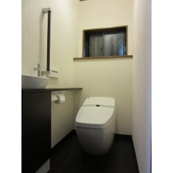将来の使いやすさを考え、手すりと洗面カウンターを設置しました。上質な素材と繊細なデザイン、優れた機能性のLIXIL最高級トイレ『レジオ』をご提案しました。お客様も大変喜んでくださり、デザインと質感にこだわりのある洗練されたトイレ空間に生まれ変わりました。