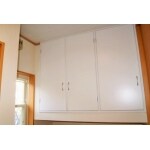 一坪ほどの玄関スペースを設けました。収納効率を優先的に考え、トールタイプの下駄箱と、下部に自転車などを置けるように、天井から1m20cmほどの高さの収納庫を設けました。