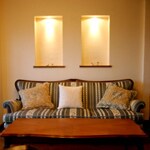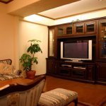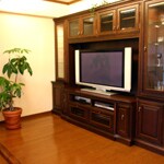 リフォームの目的は、42インチのプラズマテレビ用に購入されたテレビボードを置くための部屋づくり。 テレビに光の映り込みがないように間接照明の位置に気を配りました。 また、お客様がお気に入りの家具にあわせて壁は、スイス産の天然漆喰に少し着色して、落ち着いた雰囲気を出しました。(このスイス産天然漆喰は、カルクウォールという商品名で、風合いが良く、しかも調湿効果がある 100%天然成分の漆喰です。)