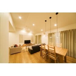 ご婚約を機に、中古物件の全面リフォームをお任せいただきました。 以前はお部屋が細かく仕切られ、光が入りにくい間取りで、昼間でも暗い印象でした。 洋室3部屋とキッチン、廊下に分断されていた空間から、間仕切壁を撤去し、広々としたLDKに変更しました。 高さを生かした勾配天井は、更に空間に広がりを持たせてくれます。 リビングの照明は、「くつろぎ」や「だんらん」等のシーンを記憶できる調光機能をお付けして、お好みの空間を演出できるようにしました。 リフォームによって、明るく開放的な空間に生まれ変わり、大変ご満足いただきました。