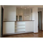 以前は光が入りにくく、暗い印象だった空間を、間取りを変更し、広々としたLDKになるようご提案しました。 勾配天井を生かした開放的な空間に、ペンダントライトやダウンライトを施工し、広がりが生まれるようプランしました。 また、テレビの背面に施工したエコカラットは、調湿や消臭の効果があり、リビングのアクセントにもなります。 間取り変更によって、ご家族が寛げる、明るく開放的なLDKに生まれ変わりました。