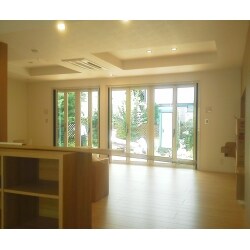 1階を全て続き間の様にしてなるべく仕切りを無くし、ご来客が来てもホームパーティーが出来る様にされたい。明るくく空気の淀みが無い清潔感の有る空間にしたい。 リビング前にサンルームが設置されておりました。サンルームで覆われていて、暗い印象でしたので、撤去をして明るく風通しのよい、すがすがしく気持ちの良くしたい。