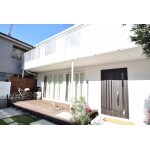 以前のリビングは和室との続き間で、リビングにサンルームが設置されておりましたが、今回のリフォーム後では、リビング・ダイニングの一部屋の空間から南側のお庭に全面開放しましたので、玄関以外の空間を奥行き2メートル、巾約6メートル程のウッドデッキにてご提案を致しました。バーベキューやホームパーティーなどお庭も出入り可能な様にしております。玄関ドアの色が濃茶でいしたので、こちらの色も検討をしましたが、リビングの床との調和と床が濃い色ですと汚れも目立ち易い為、木そのものの色がとても良いテイストとなりました。お外からもアクセスし易くお子様たちも気持ちよく遊んでおります。2階バルコニーはモダンな外観ですがお洗濯以外はあまり出入りされないという事でしたので、床素材は防水性能が高く、メンテナンス性もよりFRPの強化プラスチックとしております。以前のバルコニーが鉄骨で持ち出しておりましたので、そちらは全て撤去して新規にバルコニーを施工しております。バルコニーの奥行くが広くなった分お洗濯も干易くなりましたが、1階リビングダイニングが暗くならない様に1階の窓は巾も大きいのですが、高さ2.2メートルとしました。