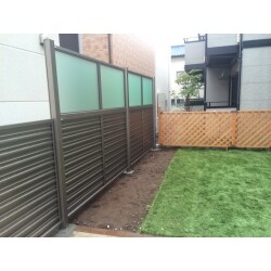 お隣との境を、目隠しフェンスをつけたい。 光も入り、水を撒いたときお隣に飛ばない様にもしたい。 お隣の窓も 塞がない様にもしたい。