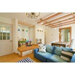 ご実家をリノベーションして新居にすることになったM さんご夫妻。 「せっかくのリノベーションだから絶対に後悔したくない」と、耐震補強、断熱面にしっかりと予算をかけ、安心の構造へと再生しました。 リビングの化粧梁やヴィンテージ塗装の壁板、キッチンの入り口の木製ゲート、モザイクタイルの洗面化粧台、どれもお気に入りのカフェのイメージを再現しました。 センスの良いM様ならではのシャビーシックな雑貨が映える素敵な空間が仕上がりました。 外国製キッチンを取り付けたこだわりの空間は、床はタイル貼り、壁は漆喰とモザイクタイル貼りでカフェの様な明るい雰囲気になりました。