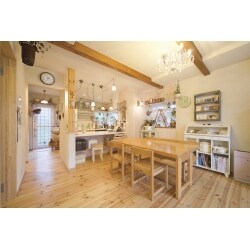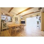 自然素材をふんだんに使用した内装に。奥様がお持ちの雑貨も似合う空間づくりをご提案しました。 なんでもぶら下げられるように取り付けたのは存在感のある化粧梁。下地を気にせずどこでも好きなものを飾れます。