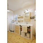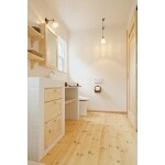 無垢(パイン)材とタイルを組み合わせて見た目も使い勝手も嬉しいオーダーメイドの洗面化粧台をご提案させていただきました。