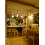 ビング・ダイニング・お部屋全体を見渡せるオープンキッチンにしました。 天板は清潔感のある白を採用。 裏板や引き出しなど、すべての部材にパイン材で造作。 以前のキッチンは、スペースも狭く物が溢れていました。 収納も豊富に設け、すっきりとした空間に。 2人で立っても邪魔にならない広々スペースも確保しています。 照明は可動式のものを採用。 チェーンをひっかけたり変化を楽しむことができます。 可愛らしいチューリップ型で、お部屋のアクセントにもなっています。