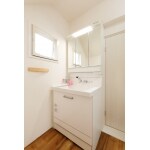 ピンクの扉カラーが可愛らしい洗面化粧台