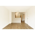 壁面、建具はオールホワイト。落ち着いた色目の床材で明るく温かみのある空間へ。