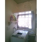 元々70cmの高さの洗面台が入っていましたが、今回85cmのものを入れさせていただきました。 また、洗濯機の上部に洗濯かごや洗濯洗剤などを置く棚を造作いたしました。