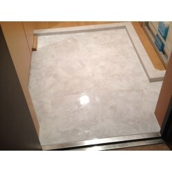 少しでも広い土間をとの事でしたが面積を広くするには限界がありましたので、艶のある大理石調にて広く見える視覚効果を利用致しました。