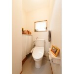 既存のトイレを再利用し、ウォシュレットを新たに取り付けました。 玄関の増築に伴い、向きも変えて使いやすくなりました。