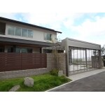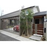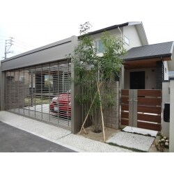 建売住宅を購入され、フルオープンの外構をクローズタイプにしたいとのご要望でした。駐車場の土間から作り変え、シャッターゲートとカーポート屋根、門扉をつけました。また、金物が多くなって無機質にならないようにフェンスや門扉には木目調の商品を使用し、柔らかさをとりいれています。