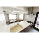 対面キッチンの開口部をさらに広げて開放的に。