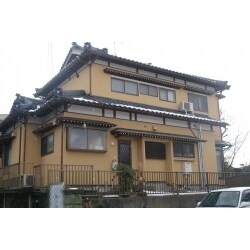 和風住宅の外壁リフォームをご依頼いただき、色々とご相談させていただきました。既存外壁が木の下地板でしたが、お客様のご希望で横目地が出ない3X10板(さんとうばん) と呼ばれる大判の外壁材を縦張りし、リシン吹付塗装を行いました。 明るいイエローベージュがお洒落な和風住宅とマッチし暖かいイメージの外壁へと生まれ変わりました。
