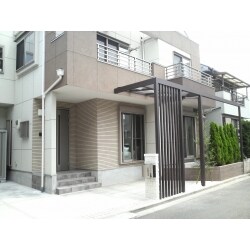 殺風景な玄関先にオブジェ的なアルミのアーチを取り付けました。