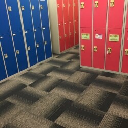 暗いイメージだったロッカールームを、デザイン性のある床などで明るいイメージに。