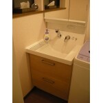 お掃除のしやすい洗面化粧台をお薦めしました。