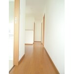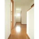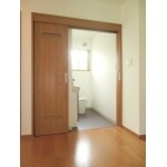 右手に洗面室前廊下への出入り口、手前にはキッチンへ通じる出入り口があります。