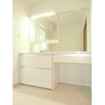 広さ・収納が充実した洗面台です。家事室を隣室に設定し、家事動線も効率的でキッチンワークもはかどります。