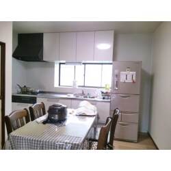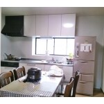 以下の施工をしております。 ・天井壁ベニヤ貼り・クロス張り(品番:天井クロスRM-733・壁クロスRM-735) ・床フロアタイル上張り(品番:WD-558) ・キッチン交換(クリナップシステムキッチン ラクエラ L型→I型にするため給排水移動・ダクト移動等) ・キッチンパネル貼り(品番: WF5K13N-72K)