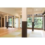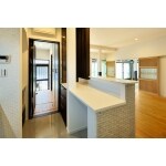屋根が重いためまず耐震性に配慮、既存の柱を減らしたり移動したりせず、耐震計画に沿って柱を追加したり耐震壁を設けます。 縁側の廊下を違和感なく部屋に取り込むために和洋折衷のデザイン・プランを作成。既存の無垢材による間仕切り建具は手を入れて再利用、天井材は2階居室の壁材として再利用しました。和室の床の間は仕上げを変えて収納として利用し、板材は棚板として再利用。 キッチンは収納を充実、洗面・トイレ・シャワールームの水廻りは1か所にまとめ、キッチン内の一部にあたる階段下のスペースは収納として有効利用。 エコカラット・大理石・タイルなどを上手に用いてリゾートホテル風のデザインにしました。