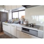 壁や窓際に物が置かれ、暗くお手入れも大変だった以前のものから、壁を撤去したことにより、明るく、お手入れも楽々な人造大理石のカウンターと、IHのキッチンへリフォームしました。 壁がなくなったことで見通しもよく、動線もスムーズになりました。