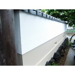 塀をブロック2段分高くする工事を行いました。 既存の塀が低いと感じていたK様。 高さを出し、目隠しの役割をしっかりと果たす塀にリフォームしました。 ブロック2段分高くした塀を、モルタルで平らにし、白とベージュの2色で塗装しました。