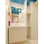造作洗面台のある動線を考慮した洗面所(約2.3帖)