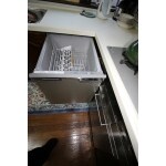 昔のタイプの食洗機です。前面のフタがガバッと開き、中からカゴを出してそこに食器を並べていくので、食器の収納量が少ない代わりに、カゴの出が少ないのです。つまりこのピチピチのコーナーの場所でもOKだったのです。