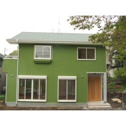 さわやかなイエローに天然石調のサイディングでアクセントを