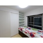 (旧株式会社ハウスドゥでの事例です。)3種類のクロスを貼り分けた寝室は、和テイストな空間に。 布団をしまう収納と可動棚で収納も充実。カウンターにはPCの配線を通す穴をあけ、キーボードが置けるスライド式のテーブルを取付け、スッキリと納まるようご提案。