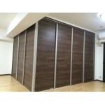 開放については、間仕切り開閉壁を使用しました。 デザイン的にも扉は、横木目を提案しました。
