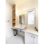 (旧株式会社ハウスドゥでの事例です。)洗面化粧台はご希望デザインに造作。窓枠は白くペイントし、2重サッシで快適に。 「生活者目線の提案のマット掛けもお気に入りです!」とお喜び頂けました。