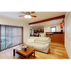 (旧株式会社ハウスドゥでの事例です。)元々の和室をLDKに取り込み、広々としたLDKに。床は無垢の三層フローリング+床暖房で快適に。また、シーリングファンの照明やブラインドもお部屋の雰囲気に合わせてご提案。