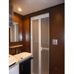 トイレは白を基調とした壁紙と木目の床でしたが、洗面室と隣り合っていることもあって、デザインを統一させることを提案しました。また、トイレは節水力の高いTOTO:ネオレストハイブリットのタンクレスタイプをお勧めしました。 洗面台は幅が小さいものを選んでいただくことで、お客様が使用している洗濯機を横に取り付けて納める方法を提案しました。また、鏡を壁付けにせることでお客様の選んでいただいた木目の壁を隠すことなく、スッキリとした仕上がりになるのでこちらもお勧めしました。