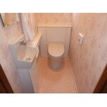 手洗い付トイレを交換し、クロスとクッションフロアをすべて張り替えました。