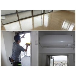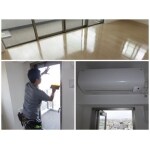 お客様と相談したのち、窓ガラスに遮熱フィルムを設置。エアコンの取り付け工事。リビングにUVフロアコーティングを行うことになりました。