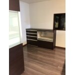 一段上がった和室スペースは解体し、根太組・コンパネ貼りの下地工事から天井下地工事、壁天井クロス貼替えで広いダイニングキッチンの完成です。窓下の収納部分も解体しています。