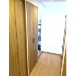 連なった6帖2部屋の和室を一つの洋室に。二人いるお嬢様の部屋となりますので、部屋中央にロールスクリーンを設置しているので2部屋のように分けられるようになっています。 4.5帖の和室と押入れは、ウォークインクローゼットとご主人の書斎に。 廊下には壁面に収納を設け、出っ張っていた下駄箱を撤去。広く通りやすい玄関→廊下となりました。