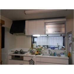キッチンの高さがお母様には高すぎるとのことで低いものに変えました。 あわせて吊戸棚を5cm下げて、オートアップを付けて身長が低いお母様が使いやすいキッチンになりました。