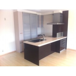 オープンキッチンがご希望でしたので、フラット対面のセミ収納タイプに。開放感をキープしつつ、壁側に収納スペースも確保しています。