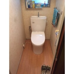 事前に商品も見に行かれ、ご希望のメーカーさんもございましたので、その中で便座に座ると自動で便器にミストを吹き付け、さらに汚れを付きにくく、落ちやすくする新技術の機能がついたタイプの商品をご提案させて頂きました。 また価格もお手頃なものを選びました。 お客様のご希望に添えるよう、水漏れからトイレの交換をすることになったので、せっかくなら快適な空間にし、喜んで頂ける工事になるよう、心掛けました。