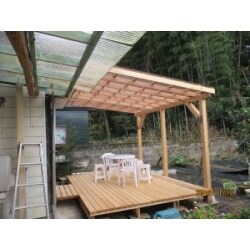 台風で既存のウッドデッキの屋根が潰れ、古くなって危ないのでやり直しました。