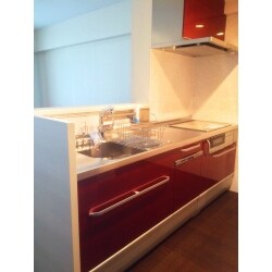 赤が映える素敵なキッチン空間となりました。